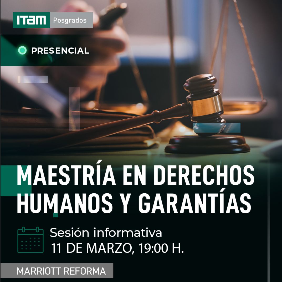 La próxima sesión informativa de la Maestría en Derechos Humanos y Garantías se realizará de manera presencial el martes 11 de marzo del 2025, a las 19:00 h, en el Hotel Marriott Reforma.